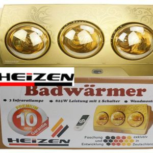 Đèn sưởi Heizen HE3BR là thiết bị sưởi ấm cao cấp, thiết kế treo tường với ba bóng hồng ngoại vàng, điều khiển từ xa và thân đèn bằng hợp kim nhôm hoa văn cổ điển. Đây là lựa chọn lý tưởng cho các gia đình cần một giải pháp sưởi ấm hiệu quả, an toàn và tiện dụng trong phòng tắm.